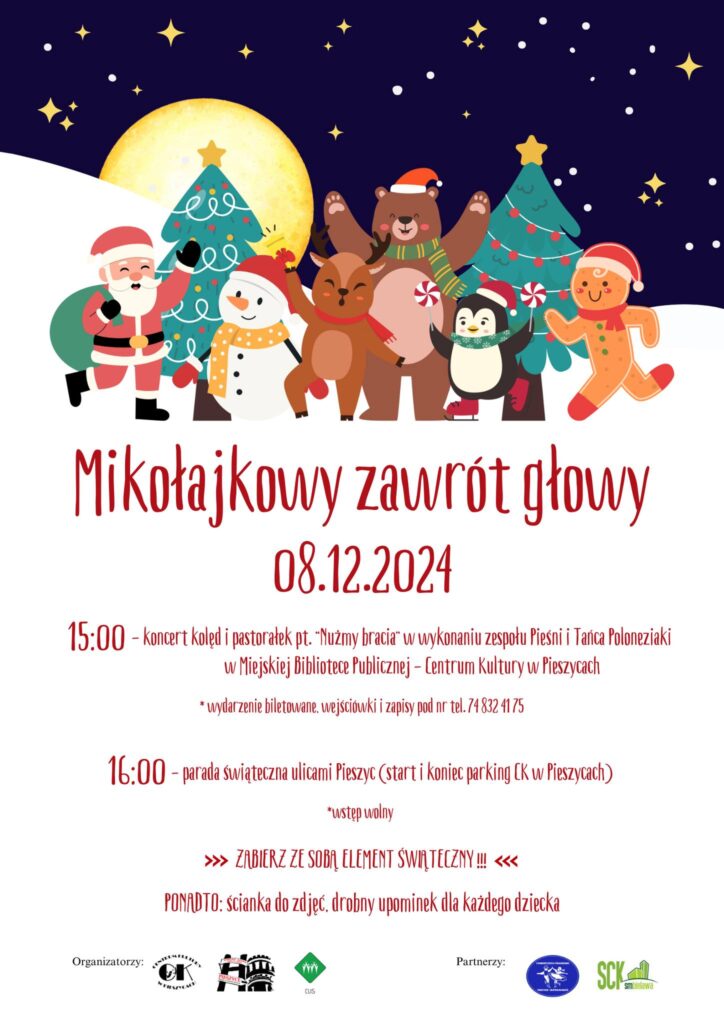 11 marca, 2024Kalendarz występów8 grudnia 2024, Centrum Kultury w Pieszycach Koncert kolęd i pastorałek “Nużmy bracia” w Miejskiej Bibliotece Publicznej- Centrum Kultury w Pieszycach. Poprzedni Wpis 14 listopada 2024, Teatr Robotniczy im. Teodora Mierzei w Bielawie Następny Wpis 12 grudnia, Teatr Robotniczy im Teodora Mierzei w Bielawie