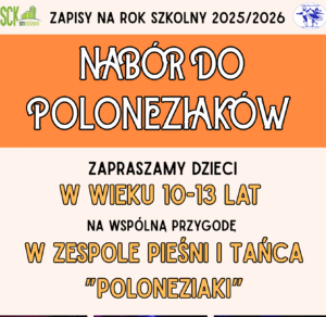 Zapraszamy chętne dzieci w wieku 10-13 lat na zajęcia w Zespole Pieśni i Tańca „Poloneziaki”!…