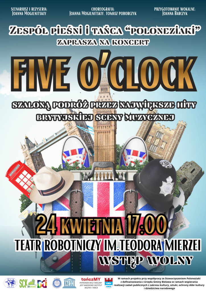 Koncert pt.”Five o’clock” w wykonaniu ZPiT Poloneziaki. Zapraszamy 24.04.2026r. o 17:00 do Teatru Robotniczego im. Teodora Mierzei w Bielawie.